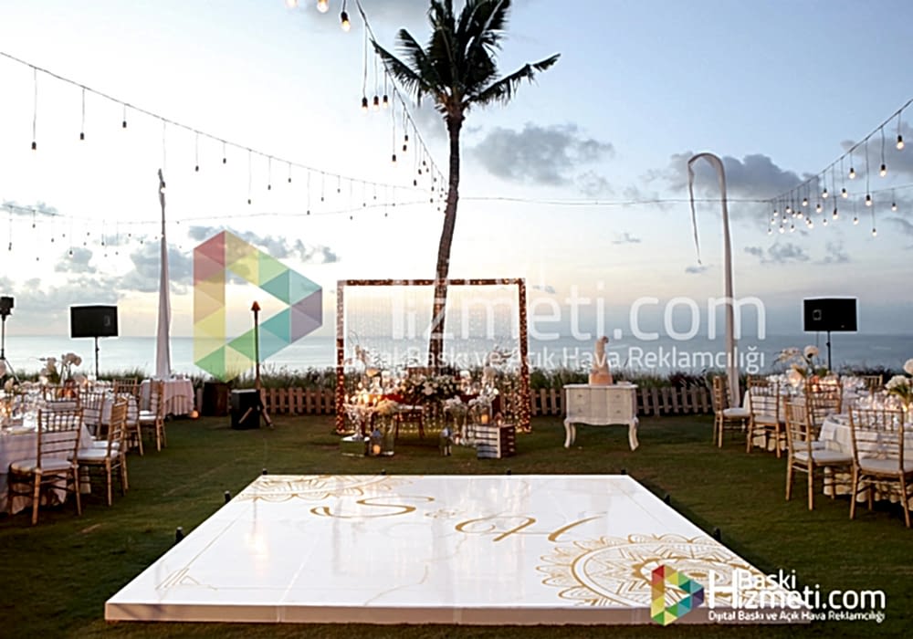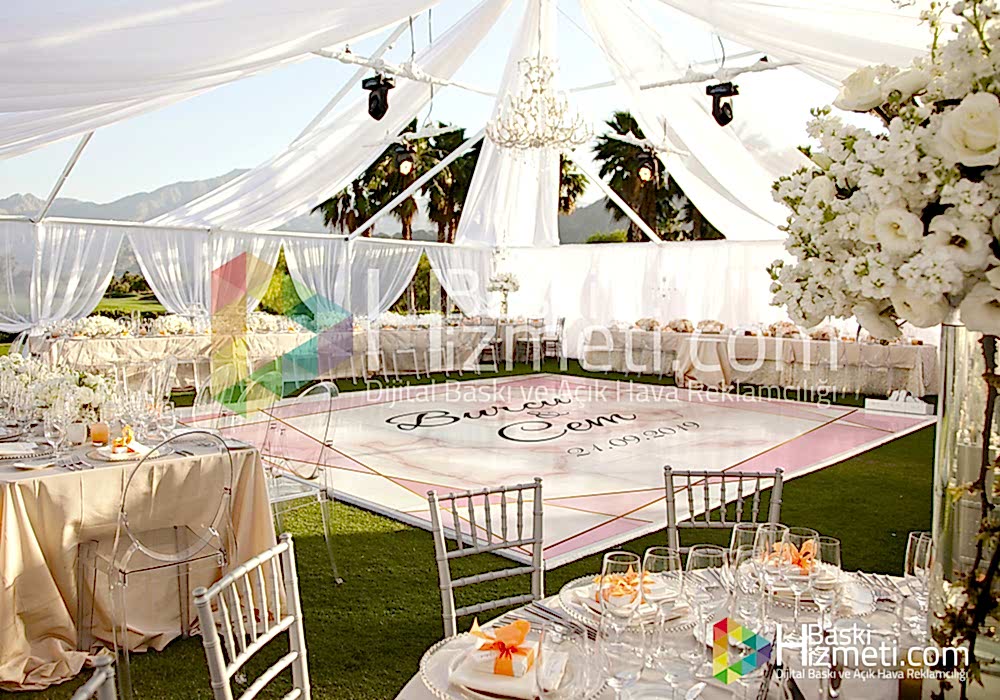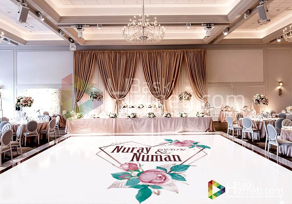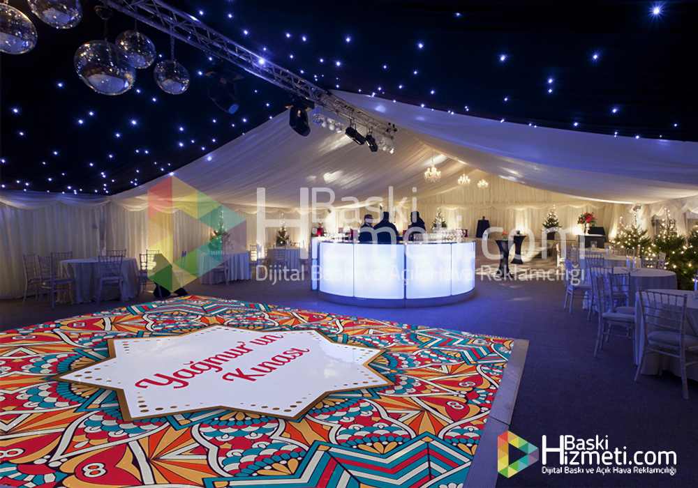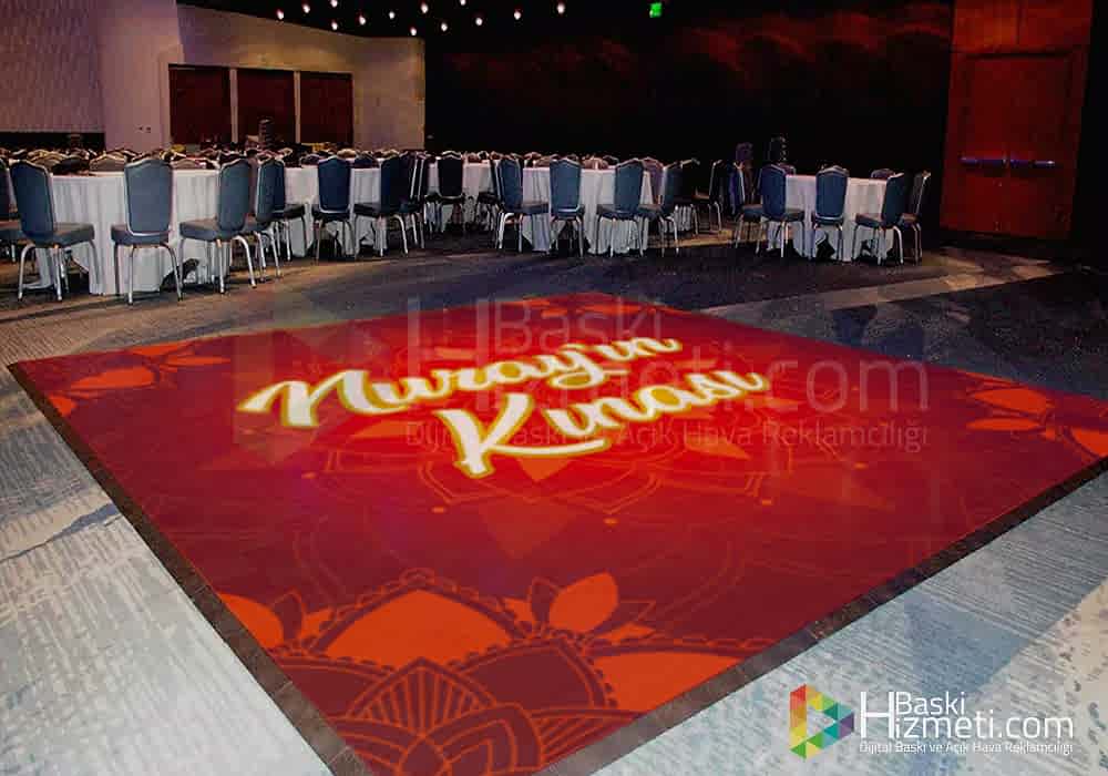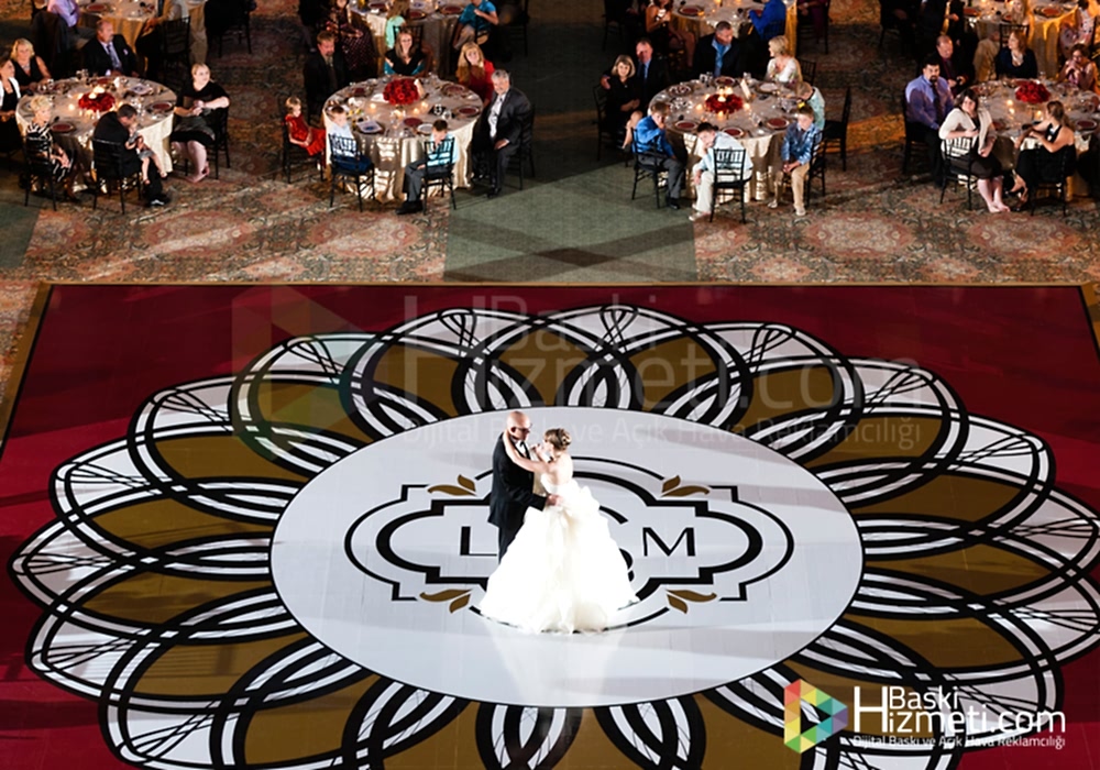 Dans pisti kaplama ile yapılan zemin kaplama, düğün salonlarında gelin ve damadın istekleri doğrultusunda gerçekleşmektedir. Unutulmaz anlarınız dan biri olan kına ve nişan pisti kaplama baskı ile sizlerde akılda kalıcı etkiler yaratabilirsiniz.